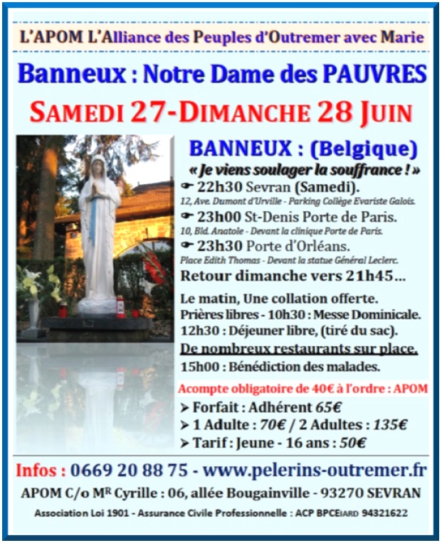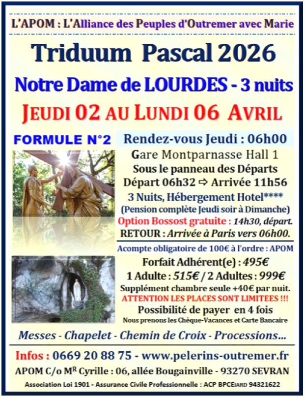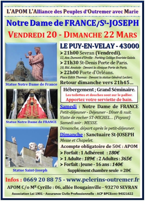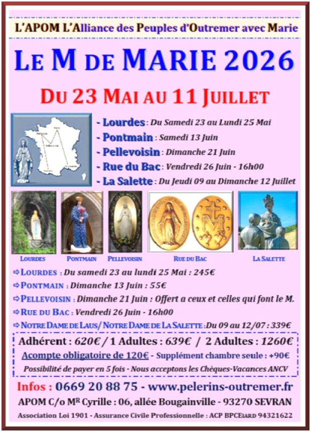 L'Alliance des Pèlerins d'Outre-Mer & d'Afrique Contacts : 0669 20 88 75 / apom@orange.fr Pèlerinages – Cheminer avec Marie…