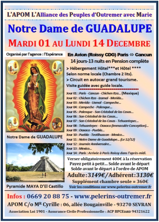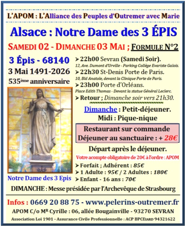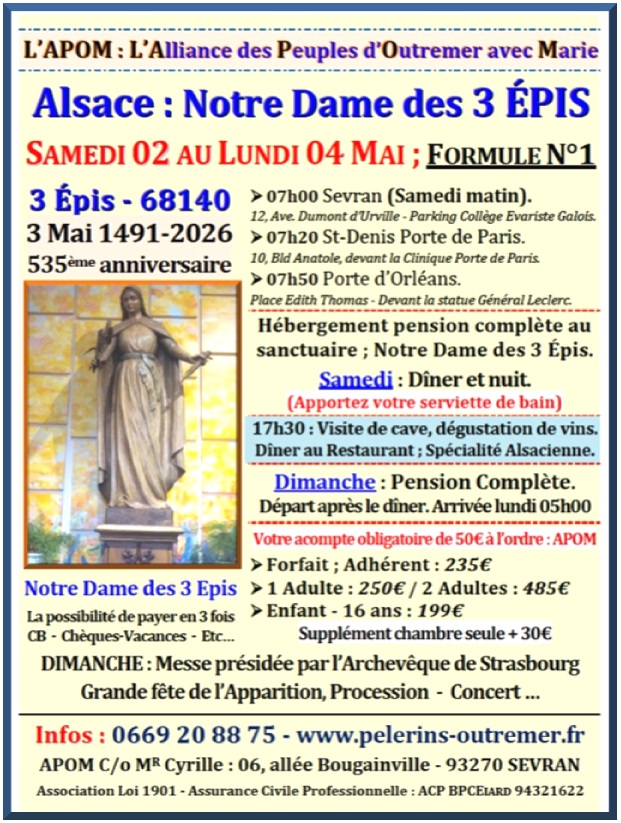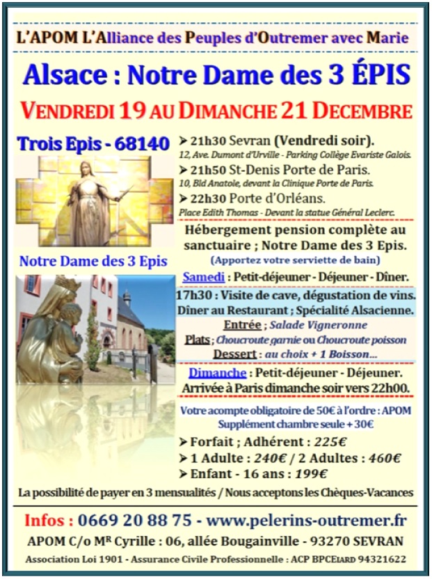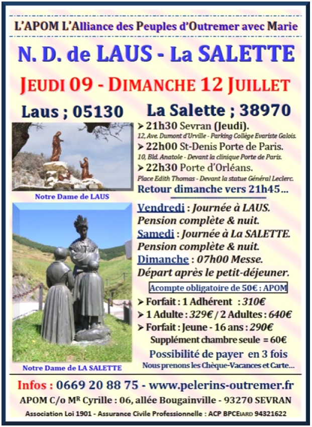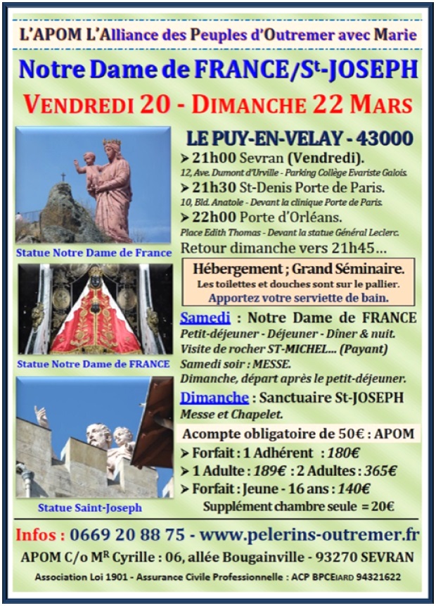 L'Alliance des Pèlerins d'Outre-Mer & d'Afrique Contacts : 0669 20 88 75 / apom@orange.fr Pèlerinages – Cheminer avec Marie…