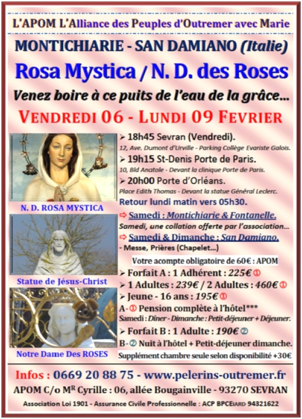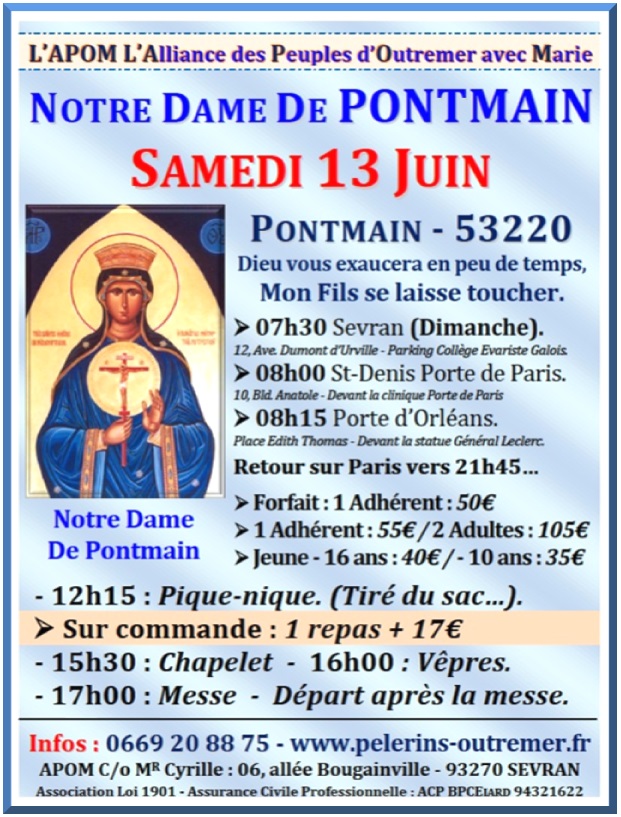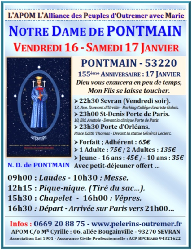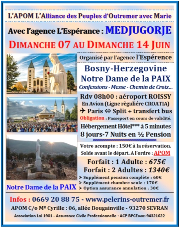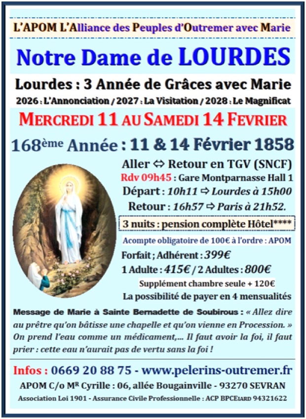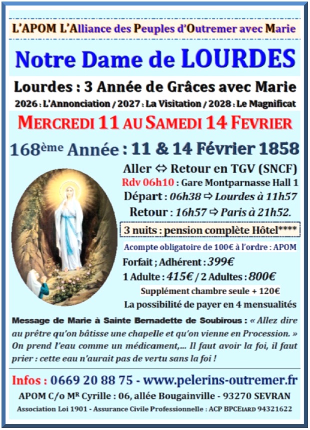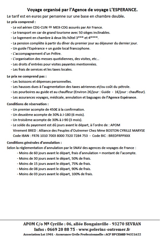 L'Alliance des Pèlerins d'Outre-Mer & d'Afrique Contacts : 0669 20 88 75 / apom@orange.fr Pèlerinages – Cheminer avec Marie…
