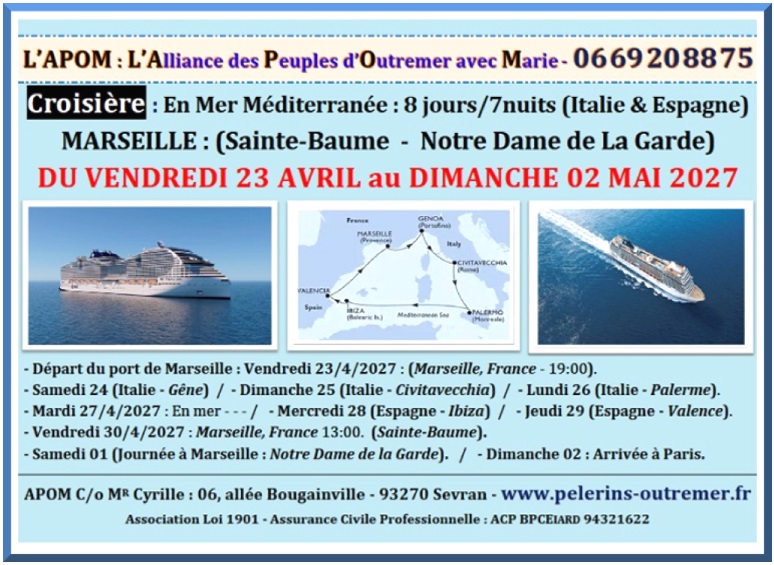 L'Alliance des Pèlerins d'Outre-Mer & d'Afrique Contacts : 0669 20 88 75 / apom@orange.fr Pèlerinages – Cheminer avec Marie…